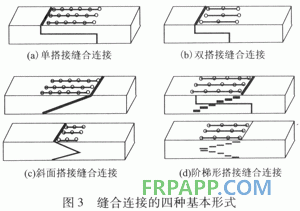 選用何種搭接方式主要是根據制件的幾何形狀的變化的復雜性開設不同形狀的窗口、預留不同形狀的凹糟、預埋各種金屬件等具體情況來決定,并且要使縫合連接工藝盡可能簡單、成本盡可能低、連接強度盡可能大。