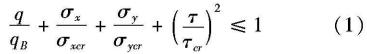 另外,接頭經過長期使用后,會松動,甚至于出傷,這樣也可使式(1)的qB,σxcr、σycr、τcr減小,從而加劇單元體失穩。