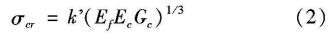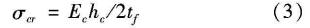 對于夾層結構,具有特有面板類似于支持在芯子彈性基礎上的局部皺曲失穩,其計算公式為: