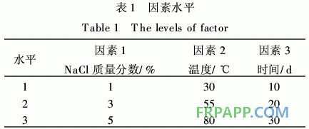 根據(jù)工程經(jīng)驗(yàn),復(fù)合材料的腐蝕老化與溫度、時(shí) 間、腐蝕介質(zhì)密切相關(guān),試驗(yàn)著重研究此3種因素與 材料腐蝕之間的關(guān)系,從中找出影響最大的因子。