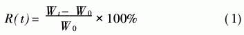式中:R(t)為增重率;W0和Wt分別為試樣的起始 質(zhì)量與浸泡時(shí)間t后的質(zhì)量。