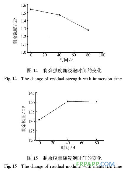 30℃去離子水浸泡,經疲勞試驗后的剩余載荷、剩余強度/模量如圖13-15所示。