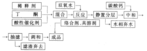 合成反應(yīng)基本上在反應(yīng)釜中密閉間歇進(jìn)行,反應(yīng)要保持較低的溫度,通過冷卻帶走反應(yīng)熱,為滿足工藝要求,廠家一般選用雙氧水含量大于30%的雙氧水,工藝中嚴(yán)格控制雙氧水的加入速度,速度過快,溫度急劇上升,環(huán)狀產(chǎn)物增多,易失控而導(dǎo)致爆炸。為保證產(chǎn)品的貯存安定性并保證產(chǎn)品穩(wěn)定不分層,需加入一定量的絡(luò)合劑(氨基酸堿金屬鹽、多元酸堿金屬鹽、磷酸堿金屬鹽等)和共溶劑(乙二醇、乙二醇單甲醚等)。