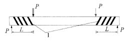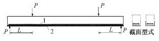 圖1 碳纖維布補強正截面 1—鋼筋;2—粘貼碳纖維布