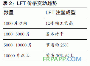 注塑成型工藝模具費用采用優(yōu)質(zhì)模具鋼加工制造,而手糊成型工藝模具多采用木質(zhì)模,故注塑成型模具成本要比手糊成型工藝高出一些。但是注塑成型自動化程度較高、成型時間短,而手糊工藝成型時間長、人工成本高,故隨著生產(chǎn)量的增加,注塑成型的經(jīng)濟優(yōu)勢會越來越明顯,制造成本大幅減少。