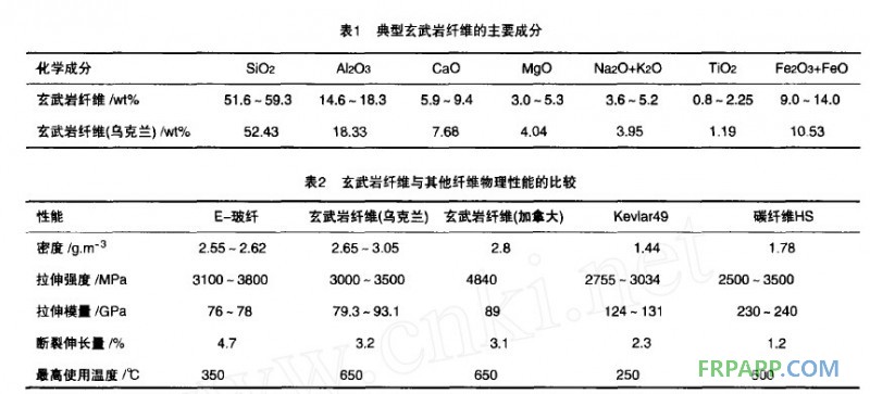 這種成分使玄武巖纖維具有優(yōu)良的物理化學(xué)性能。玄武巖的性能很大部分取決于玄武巖礦石的性能和整個(gè)生產(chǎn)工藝。表2列出了玄武巖纖維與一些主要的纖維在物理性能上的比較。