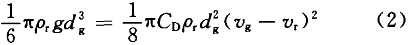 式中:vg為氣泡運動速度;vr為樹脂流動速度;CD為阻力系數;pg、dg分別為氣泡密度和氣泡直徑;Pr為樹脂密度。