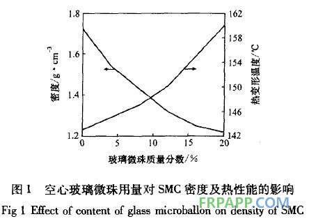 玻璃微珠可以作為SMC填充料來降低其密度,其用量增加而SMC密度下降。玻璃微珠質量分數達到20%時,填充SMC的密度比常規SMC的低30%。