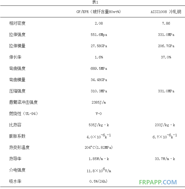下表為以FW(纖維纏繞)法制造的玻纖增強環氧樹脂的產品為例與鋼性能的對比