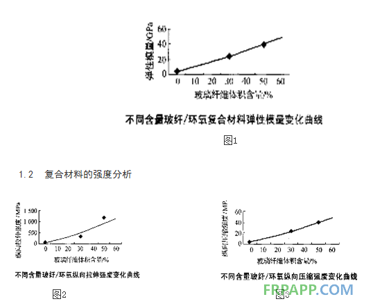 當玻璃纖維體積含量為50%時,復合材料可獲得較好的綜合力學性能,其中彈性模量可達40GPa,縱向拉伸強度可達1200MPa,縱向壓縮模量可達700MPa。
