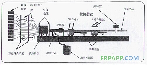 主要采用玻璃纖維無捻粗紗(使用前預先放置在紗架上),它提供縱向(沿生產線方向)增強。其它類型的增強材料有連續原絲氈、織物等。它們補充橫向增強,表面氈則用于提高成品表面質量。樹脂中可加入填料,改進型材性能(如阻燃),并可降低成本。