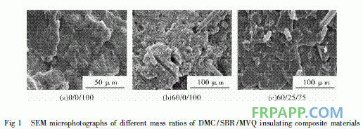 a) SBR 作為相容劑改性DMC /MVQ 絕緣復合材料,可以提高其力學性能以及二者之間的相容性,DMC /SBR/MVQ 最佳質量比為60 /25 /75。