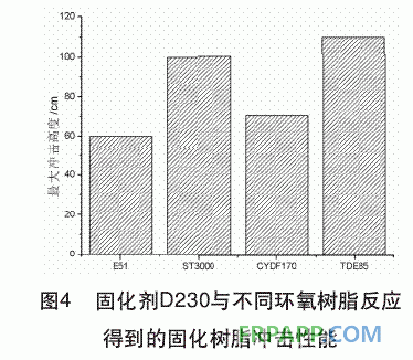 (3)以D230作為固化劑,TDE85固化后得到的涂層沖擊性能最優,E51最差。
