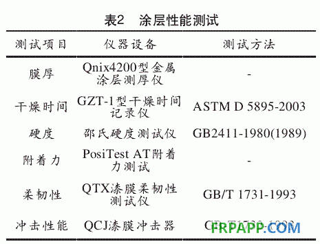 固化樹脂涂層各項特性的測試設備和測試方法如表2所示。
