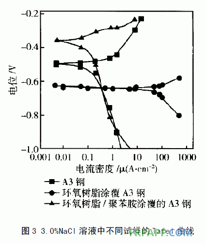 利用涂料將金屬表面與周圍腐蝕性物質隔開,阻止氧氣、水及其他離子的浸入, 降低金屬的腐蝕速率。Wessling. B[ 13 ] 用電化學方法測試,發現隨聚苯胺涂層厚度的增加, 鑄鐵的腐蝕電流隨之減小, 他將這一原因歸結為聚苯胺的屏蔽作用。