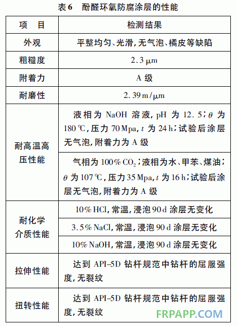 4) 耐高溫高壓性能。按照SY/T 0544-2010 石油鉆桿內涂層技術條件附錄C 中方法測定涂層耐高溫高壓性能。