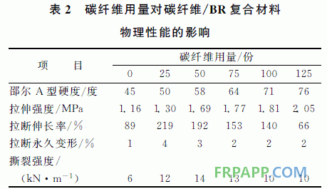 碳纖維用量對碳纖維/BR 復(fù)合材料物理性能的影響如表2所示。