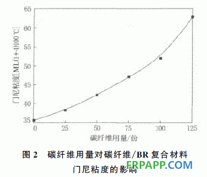 碳纖維用量對碳纖維/BR 復(fù)合材料門尼粘度的影響如圖2所示。