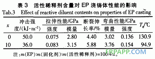 2.5 活性稀釋劑對EP澆鑄體性能的影響