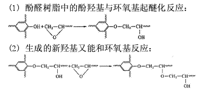 酚醛樹脂帶有能與環氧樹脂中的環氧基、羥基起反應的基團,在一定條件下這些基團能相互交聯產生固化[3]。