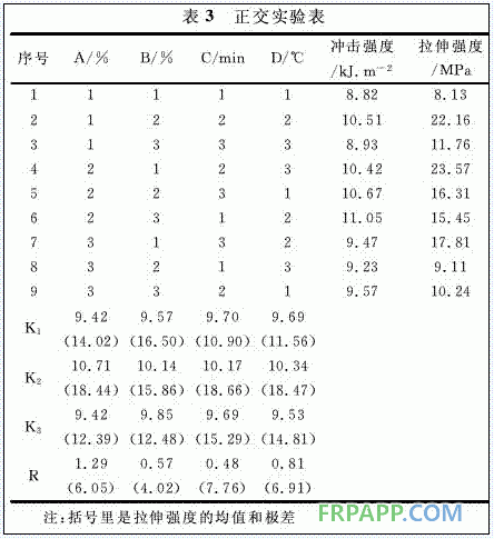 由表3可知,通過正交實(shí)驗的極差分析,各因素對涂料的平均沖擊強(qiáng)度和平均拉伸強(qiáng)度的影響順序分別是:A>D>B>C,C>D>A>B。通過這兩種性能得出的最佳方案分別是:A2B2C2D2,A2B1C2D2.。綜合考慮它們的影響,選定聚氨酯改性環(huán)氧樹脂涂料的最佳方案為A2B2C2D2。即聚氨酯含量15%,固化劑含量15%,反應(yīng)時間60min,反應(yīng)溫度70℃。