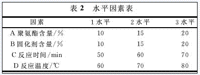(1)聚氨酯改性環(huán)氧樹脂涂料的最佳制備條件是:聚氨酯加入量15%,固化劑加入量15%,反應(yīng)時間60min,反應(yīng)溫度70℃。