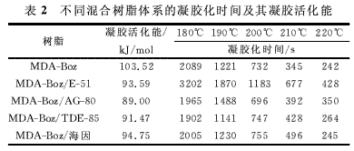 2.2 苯并噁嗪/環氧樹脂混合物的凝膠反應活化能