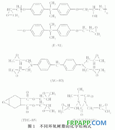 本實驗所用的環氧樹脂為市售產品,包括縮水甘油醚型環氧樹脂(E-51)、縮水甘油胺型環氧樹脂(AG-80)、酯環型環氧樹脂(TDE-85)、特種環氧海因環氧樹脂等4種類型,其基本性質列入表1。