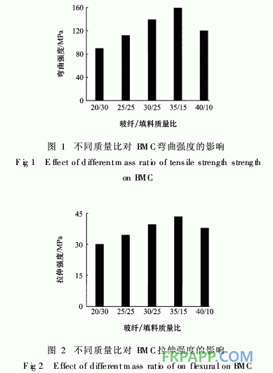 2·1 玻纖/填料質(zhì)量比對(duì)BMC力學(xué)性能的影響