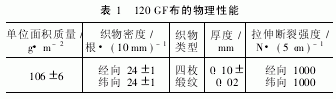 EP:3233,符合Q/6S1517-2000,自制; GF布:120,其物理性能見表1,法國Hexcel公 司。