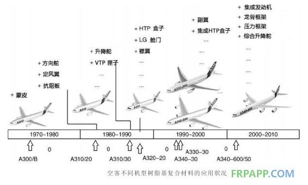 民用航空材料方面由于采用環(huán)氧基碳纖維增強材料,帶來非常明顯的性價比,歐洲空中客車公司提出更多地用輕質高強材料使機身減重30%,整個飛行成本可降低40%。再如波音B777飛機上采用碳纖維增強工程塑料量達9.9t,占結構總質量的11%。而波音B787飛機上采用環(huán)氧樹脂基、雙馬來酰亞胺基體碳纖維復合材料和熱塑性工程塑料,其用量達機重的50%。環(huán)氧樹脂基、雙馬來酰亞胺基碳纖維復合材料主要用來制造機翼、機身、地楞橫梁等部位的結構材料,內部裝飾上也大面積使用了熱塑性工程塑料[11]。
