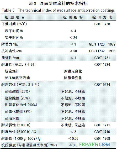 濕面防腐涂料的技術指標見表3。